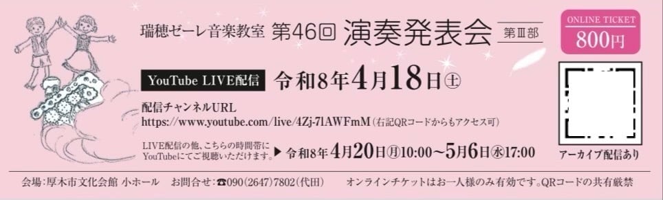 【 第3部 】令和8年4月18日(土) 第46回瑞穂ゼーレ音楽教室 第3部 オンラインチケット